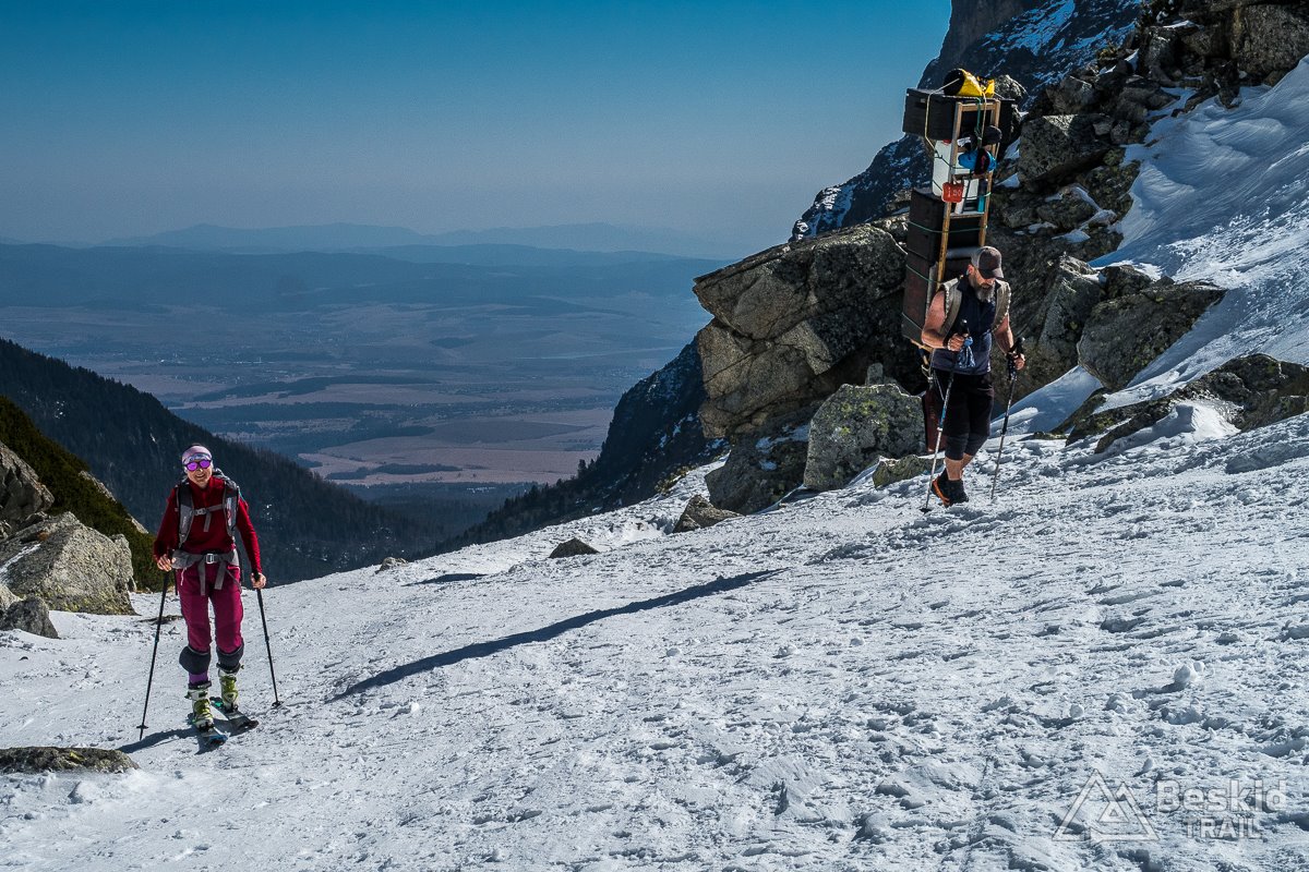 Kolejny zjazd do stawku, przefoczenie i podeszliśmy jeszcze ponownie pod Zbójnicką Kopkę, by końcowy zjazd zrealizować tzw. General Sus czyli szeroką dolinką wyprowadzającą w górne partie Doliny Staroleśnej. Rano podchodziliśmy nią w nadziei na udany zjazd, który pod wieczór już nie był tak dobry, ale wciąż przyjazny. Na koniec czekała nas jeszcze przeprawa przez kosówki, ale bez strat w sprzęcie i ludziach, więc bezpiecznie udało się dotrzeć do wylotu doliny. Potem jeszcze krótki spacer na Hrebeniok, zmiana butów na wygodne adidaski, i wzdłuż kolejki zeszliśmy do Starego Smokowca.