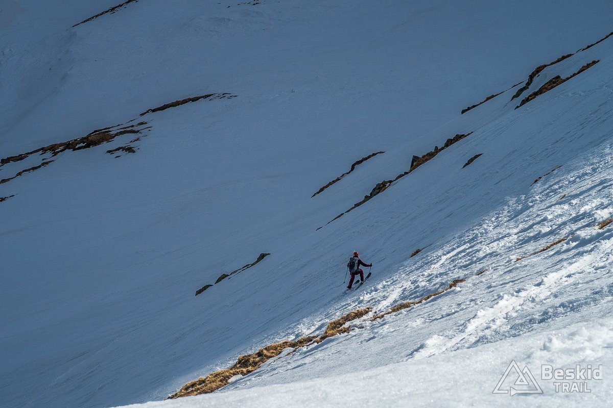 Samo wejście na Graniastą Turnię wymaga obycia ze stromszym terenem, ekspozycją i nieco podciętą linią podejścia, którą trzeba później korygować w trakcie zjazdu. Doświadczeni skiturowcy zapewne dobrze sobie poradzą z tym tematem, lecz początkującym polecam towarzystwo wprawniejszych partnerów.